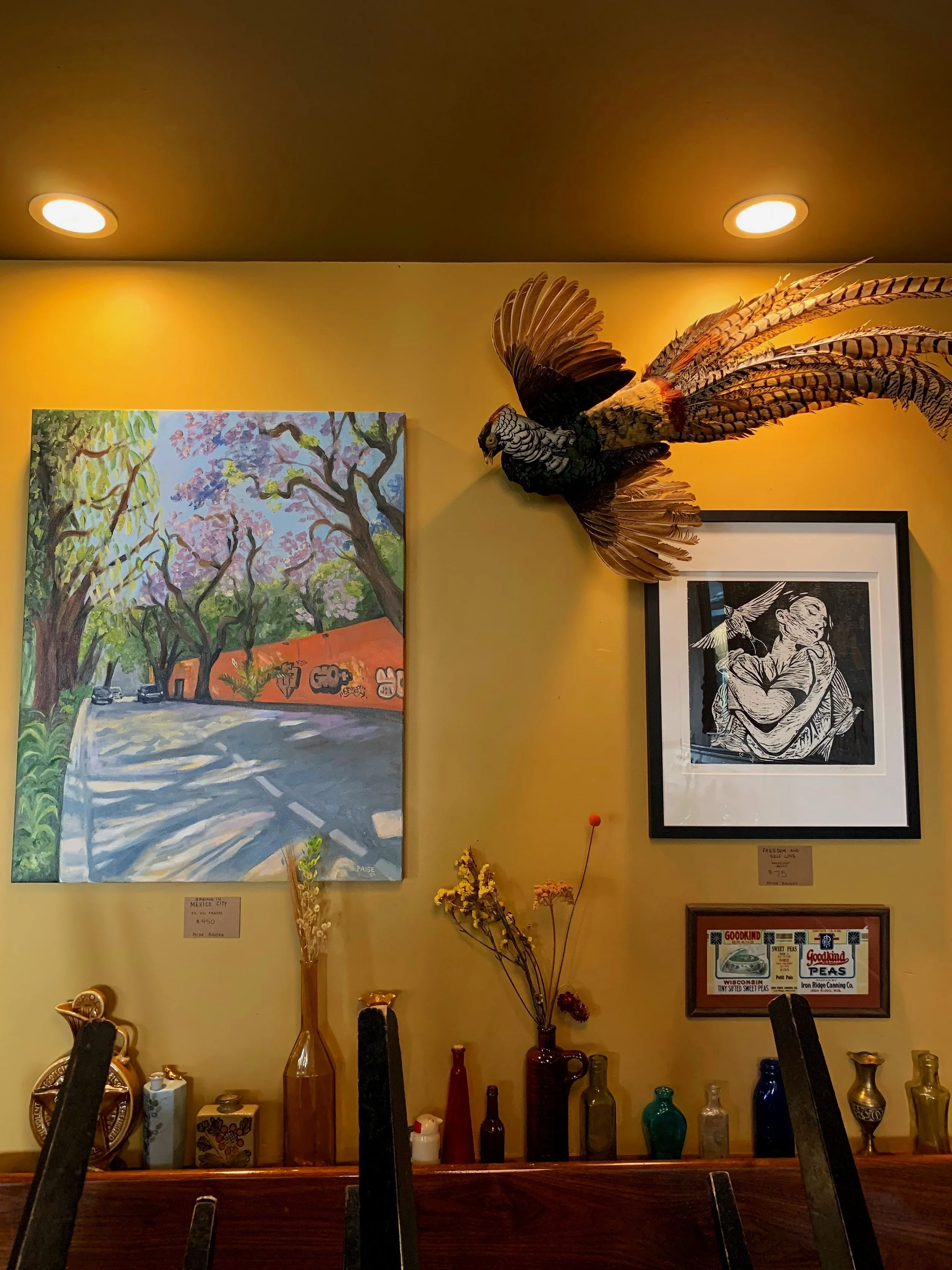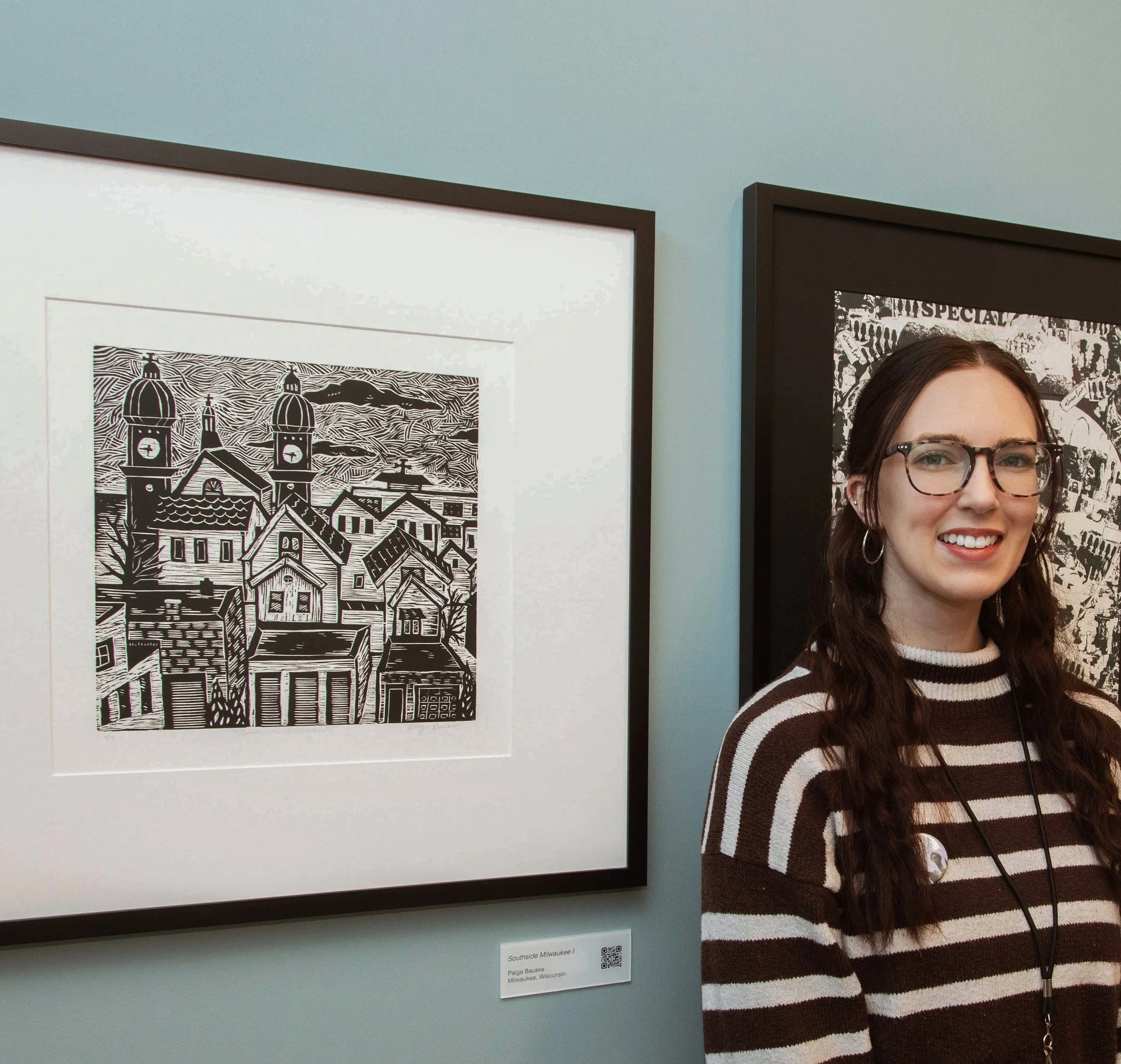 Paige Bauske is a visual artist primarily working in oil paint and woodcuts, while teaching ceramics. She was born and raised in Northern Illinois, but moved to Milwaukee in 2016 to pursue art education. She graduated from the University of Wisconsin-Milwaukee in 2019 with a Bachelor’s of Art Education. Paige has been teaching High School art in Milwaukee for 6 years and continues to pursue and explore her art career. In recent years, Paige has painted many murals with students and in the community. In 2020, Paige’s work was featured in the UWM Art Educator Exhibition titled The Ties that Bind. Her work can be seen in the permanent collection of Planned Parenthood- Milwaukee Water St. She also had a collection of work shown at Goodkind in Milwaukee, WI. Paige has been involved in social justice work such as creating her Wisconsin United poster for Milwaukee Teachers Education Association, her teacher union, which was used in a state rally.